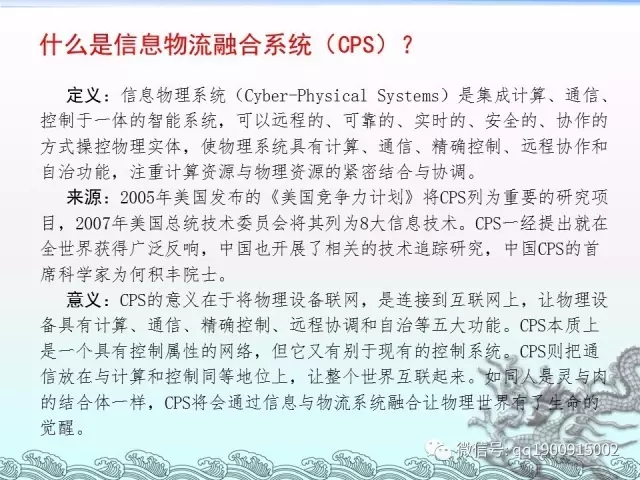 这也是我关于智慧物流的演讲系列PPT之一,谈论了CPS对智慧物流变革的影响。演讲PPT如下: