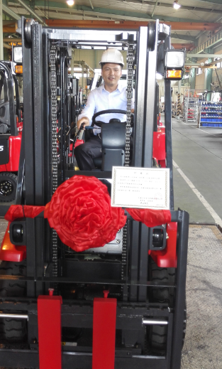 力至优叉车(上海)有限公司朱副部长成为首位试驾第25000台叉车的代表!
