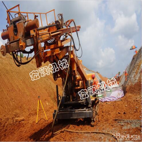 护坡锚固钻机主要适用于:建筑、水利、勘探、深基坑支护,边坡加固等工程,尤其适用于基坑锚杆孔、建筑工地钻探,该钻机采用履带式底盘,行走方便,配套使用麻花钻杆,三叶合金钻头,优点是钻臂的行程高度可达到5.5-20米,日钻孔效率可达400-600米,大大节约了人工成本。