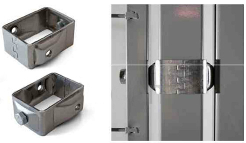 Troax 按扣是立柱的替代解决方案,在安装中充当两个相连面板的加固接头。安装按扣时无需螺丝或使用工具