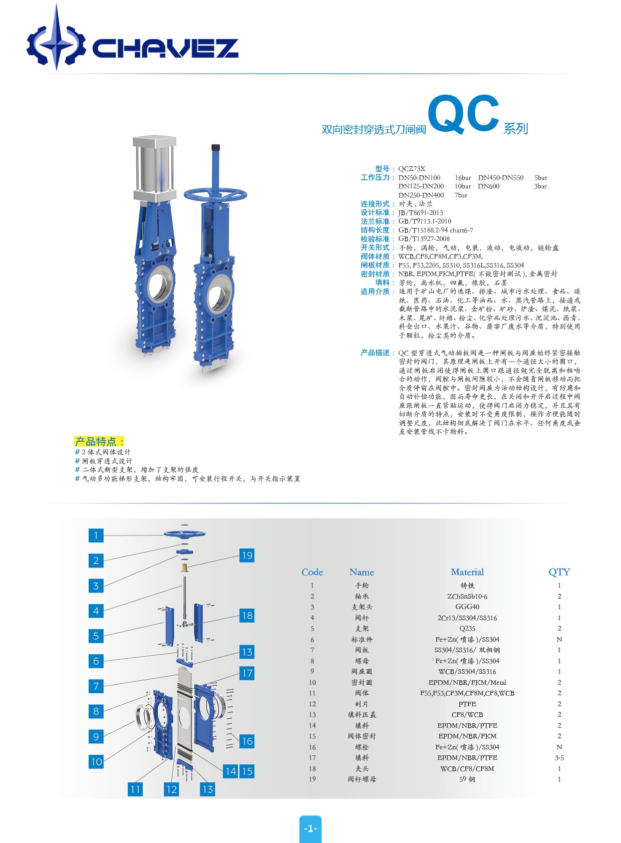 产品描述:QC型穿透式气动插板阀是一种闸板与阀座始终紧密接触密封的阀门,其原理是闸板上开有一个通径大小的圆口,通过闸板启闭使得闸板上圆口跟通径做完全脱离和相吻合的动作,阀腔与闸板间隙较小,不会随着闸板移动而把介质停留在阀腔中。密封阀座为活动结构设计,有防腐和自动补偿功能,因而寿命更长,在关闭和开并启过程中阀座跟闸板一直紧贴运动,使得阀门启闭力稳定,并且具有切断介质的特点,安装时不受角度限制,操作方便能随时调整尺度,此结构彻底解决了阀门在水平、任何角度或垂直安装管线不卡物料。