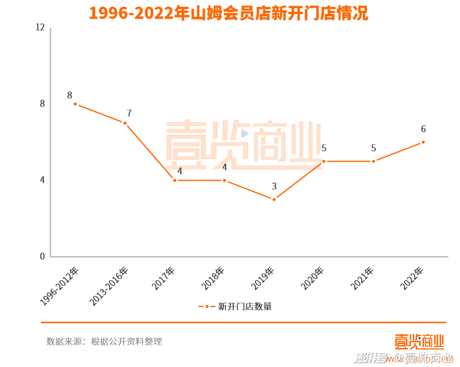 1996年,沃尔玛进入中国市场,并于同年开出第一家沃尔玛购物广场和第一家山姆会员店。随后,沃尔玛开始在中国快速扩张,截至2012年底,共开出280家大卖场门店。但同时,因为经济发展、物业等多方面原因,山姆会员店则一直扩张缓慢,同期仅开出8家门店。