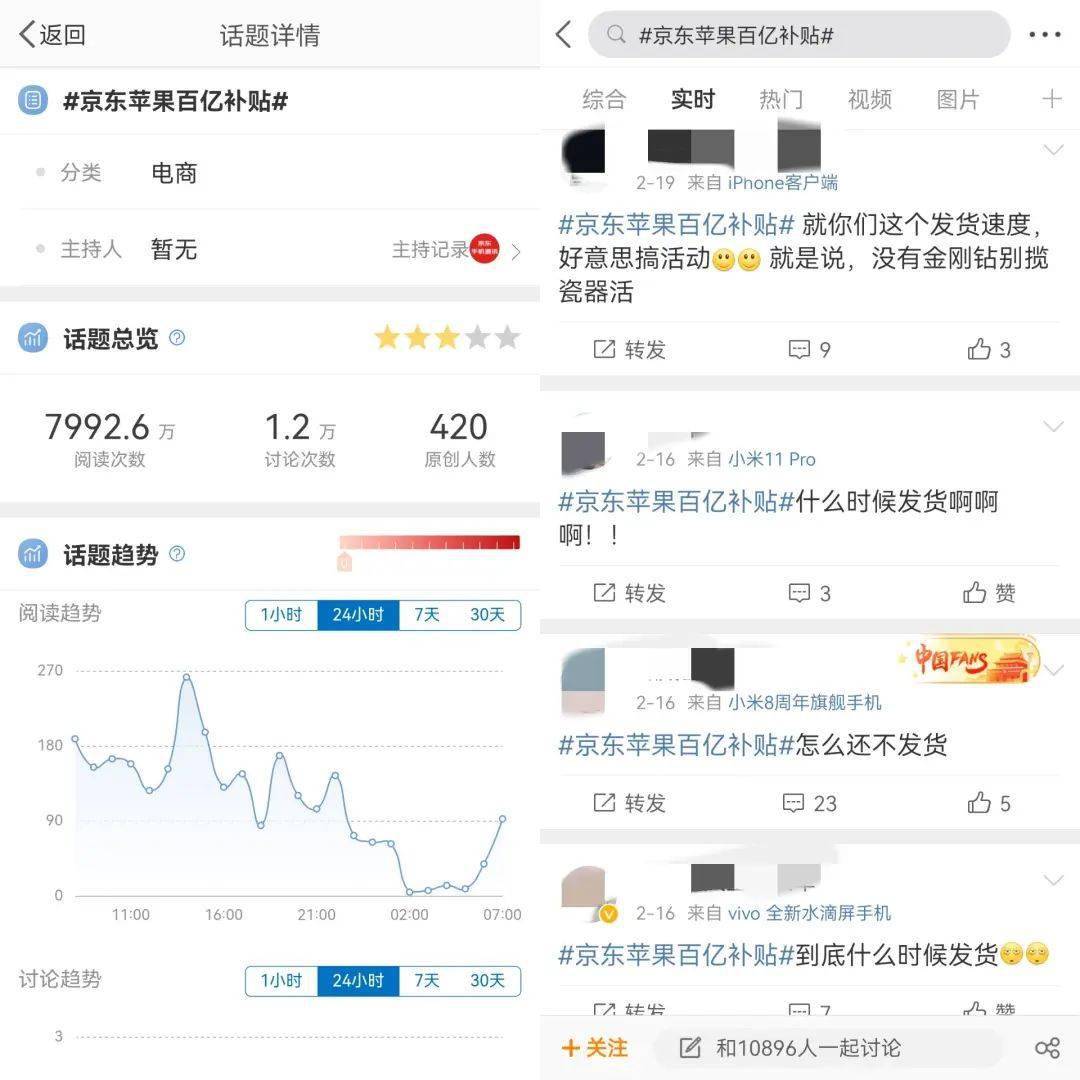 #京东苹果百亿补贴#话题中,发货慢成了主要问题