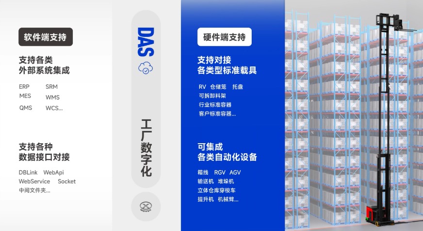 DAS 工厂数字化可基于货物时效、运输距离、机器人实时位置等多维度数据,通过智能算法实时生成*优搬运路径,自动规划*佳库区、*优储位及*精益的物流时间。以生产型企业为例,系统能精准匹配生产节拍,优先调度临近生产线的物料,实现“先进先出、快速供料”,将仓储响应效率提升 40%;在电商大促场景中,系统可根据订单热度动态调整货位,让高频出库货物靠近分拣区,缩短搬运距离,助力订单快速履约。这种 “硬件执行 + 软件决策” 的数智闭环,正是中力 “数智新仓” 的核心内涵。