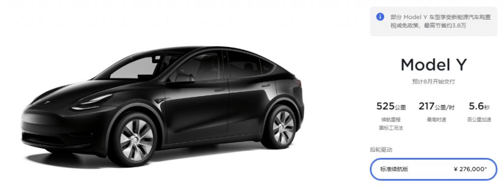7 月 8 日,特斯拉正式上线 Model Y 标准续航版,续航里程 525 公里,百公里加速 5.6 秒,*高车速 217 公里 / 小时。*重要的是,起售价只有 27.6 万元,让很多人惊掉了下巴。