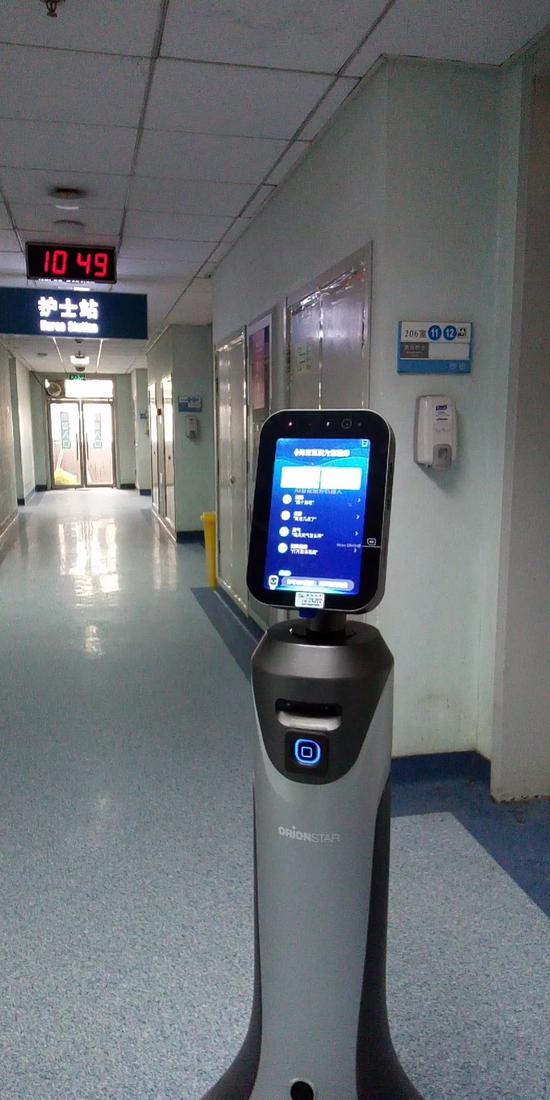 越凡科技将原本适用于零售场景与移动讲解和服务的机器人,改造成了针对医院场景使用的机器人。