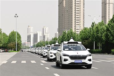 上图为百度无人驾驶载人测试车队在沧州市第二批智能网联汽车载人测试路网上行进。资料照片