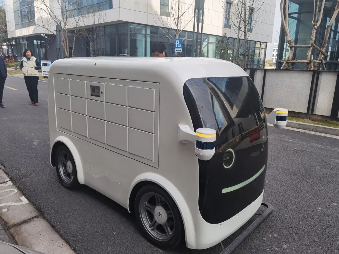 近日,青浦移动智地园区内,两辆憨态可掬的无人车“配送员”引起大家的关注。它们穿梭在各个写字楼之间,为白领们配送外卖或者快递,十分方便。