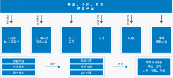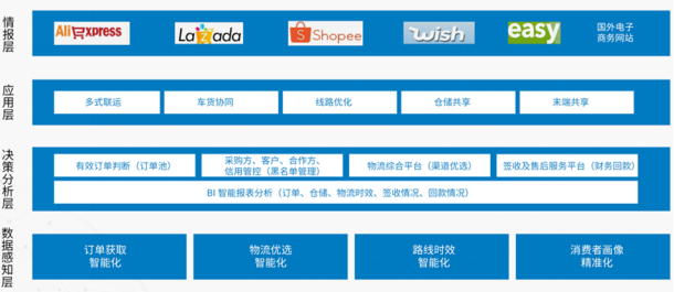 纵横跨境中台是跨境电商物流实现互联互通的中枢神经系统,整合集成客户的其他信息系统,使供应链各节点企业形成无缝衔接,对各个节点进行数字化赋能,构建跨境电商物流统一信息平台。一方面,为满足成员内部各职能部门的信息采集需求,构建营销、操作、客服、财务、信息管理等子系统;另一方面,构建综合运输管理、仓储配送管理、进出境通关管理、金融税汇咨询、综合查询系统等系统。成员内部的子系统及模块因成员自身的需求而异,但信息系统可供查询与挖掘处理的基础数据则完全一致,全平台数据的更新同步实时进行。构建一体化的信息平台,提升行业物流效率、提高服务水平、优化经营效益,同时减少决策失误、降低综合物流成本、降低经营风险.纵横跨境平台的资源整合、一站式服务和新技术集成,有效提升了物流服务的组织化、集约化、信息化管理水平。同时,助力中小物流企业创新发展、增加就业、创造税收、保护环境。通过大数据的分析,能够让某个行业、某个企业的物流成本下降 10%至 20%不等。建立了一个基于物联网技术的智慧应用平台,实现平台与移动端的互联互通,为用户提供基于“位置”与“身份”的人、车、货的物流全方位智能服务,通过大数据平台对数据进行存储、整理、计算分析,挖掘大数据的价值为用户提供物流、电商、供应链金融、大数据增值运营服务。统一作业标准和服务管理规范,统一管理和操作系统,统一运营品牌和形象。最后将资源、服务、能力开放共享给向各类企业,让其共享围绕跨境电商供应链的服务,形成新生态。