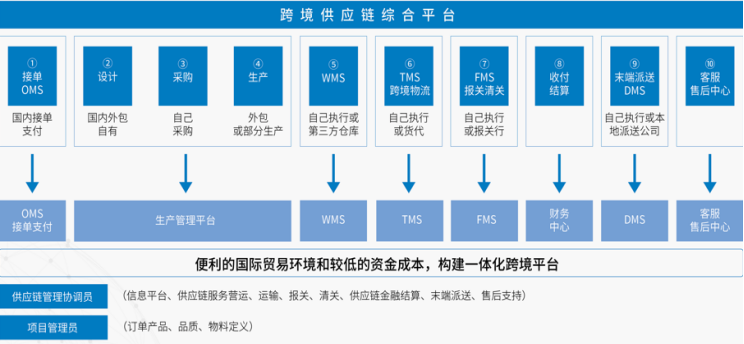 跨境电商在市场需求拉动与政策推动的双重动力作用下快速发展的同时,却仍需面对一道绕不开的难题——物流。海外收货及清关、国际运输、报关及配送是商品从国际市场到达客户手中必经的三部曲,纵横境中台由订单管理平台(OMS)、集货调度平台(CMS)、云仓管理平台(WMS)、运输管理平台(TMS)、报关清关管理平台(FMS)、末端配送平台(DMS)、售后服务平台(OSS)、财务自动化结算平台(FSS)、API接口平台(DES)等多个子产品系统构成产品生态。