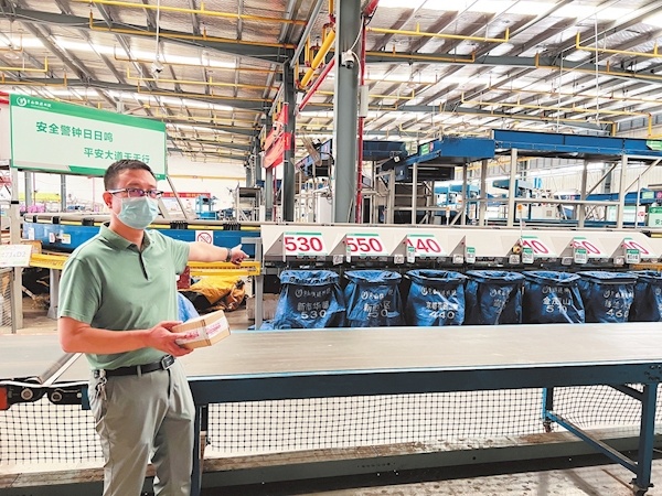 金瑞物流产业园内,京山溪鸟供应链管理有限公司负责人周平向记者介绍全自动分拣线。