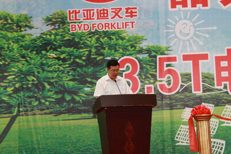 8月2日,比亚迪韶关工业园举行盛大的开园仪式,全球首款搭载“铁电池”的比亚迪新能源3.5T电动叉车在韶关工业园下线,并举行隆重剪彩仪式。韶关市市委书记郑振涛、市长艾学峰等政府领导,比亚迪总裁王传福、高级副总裁王念强,比亚迪叉车经销商代表及专业媒体朋友出席此次重大活动。王传福指出,新能源叉车将是未来叉车行业的发展方向,并强调比亚迪叉车不仅要在技术和产品上大胆创新,还要在市场推广模式上进行创新。