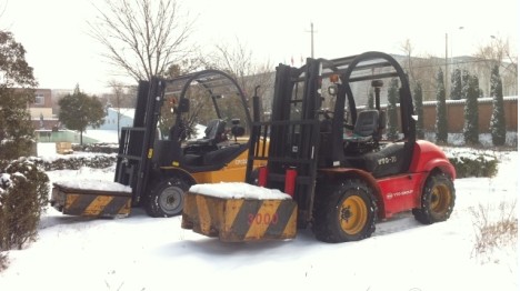 这场大雪不止给我们带来了欢乐和喜悦,还给我们带来了一个难得的机会,测试东方红越野叉车在雪地中的通过性和工作能力。我们选取了一辆2.5吨越野叉车和一辆3吨越野叉车,在覆盖着15厘米积雪的越野叉车试验场上进行了空载行驶试验、满载行驶试验、坑洼地面通过性试验等多个试验项目,两辆越野叉车在实验中均获得了令人满意的成绩,体现出了东方红越野叉车的优良性能。
