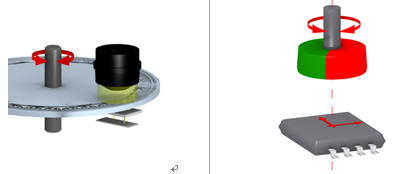 图1、2: 用光电编码器(左)和配备霍尔传感器的编码器(右)分别测量一个360度的转角