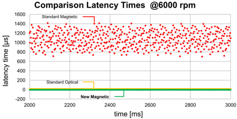 磁性编码器已经普遍用于移动式机器行业和海上作业。这类操作中,用户可充分体验到磁性编码器的抗潮湿、机械强度高的优点。但目前,如果用户看中磁性编码器稳定性强、外观紧凑这类优点,愿意使用磁性编码器,就不得不降低对精确度和动态分析的要求。市场中行销的磁性编码器等待时间一般在 600 µs到 1 ms 之间。