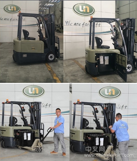 特别值得推荐的是,尤恩三支点电动叉车电瓶侧取更换,不仅快速、方便还省时。