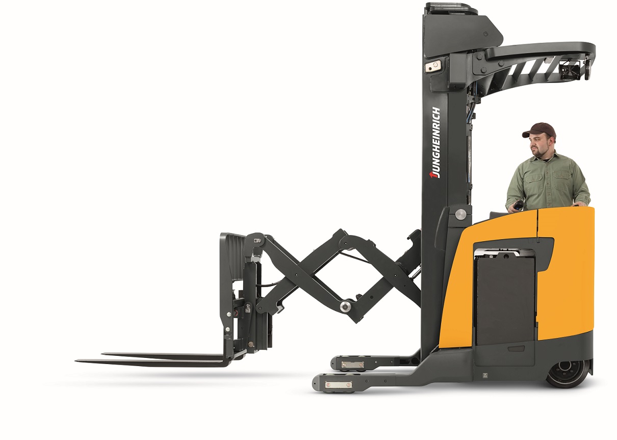 ETR 3系列紧凑的底盘设计使得工作巷道宽度最窄可以达2720毫米(基于欧洲托盘宽度计算)。除了上述的宽大的支撑臂内宽,14种门架高度,两种尺寸的电池舱和6种承载轮,使得操作者能够最优化调整叉车以适应每次物料搬运作业的特别需求。在最大提升高度11.35米时,双深位前移叉车仍然能够处理超过800公斤的荷载。