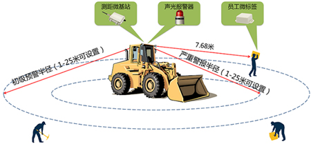 源于清华大学精仪系的清研讯科公司,率先研发的车辆/人员测距报警防撞解决方案,采用LocalSafe无线脉冲专利技术,通过在大型工厂车辆上固定LocalSafe微基站,实时监控几十米半径范围内LocalSafe微标签的相对距离,精度达到10厘米。起到根据距离远近、判断危险程度,作出不同级别的声光报警,有效预防、杜绝车辆碰撞碾压员工等高危事故发生。
