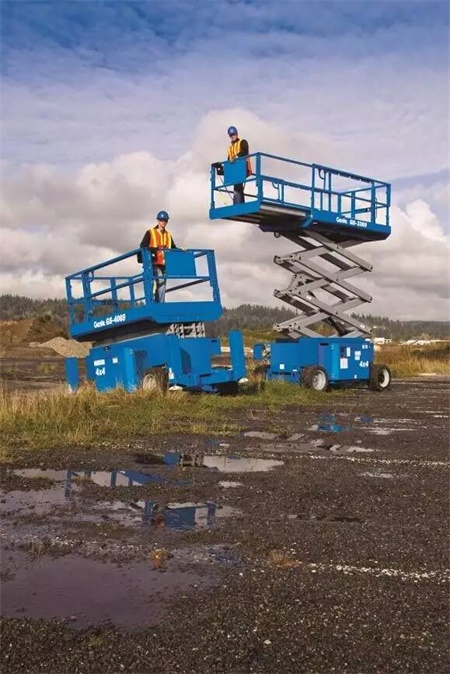 第3级:越野型——越野型设备能应付几英寸深的泥坑或松软的碎石路面、雪地路面、材料堆,能越过大多数障碍物、轻松爬山。此类装置相对较新,在过去的5-10年间才逐步发展,包括许多具有固定轴和低技术牵引力控制的四轮驱动装置和具有摆动轴和电子牵引力控制的两轮驱动装置。这种新技术的应用有效地让动力输出到最需要的车轮上。根据并行比较表明,具有摆动轴和最新交流牵引力平衡驱动技术的两轮驱动设备能轻而易举地胜过四轮驱动设备。Genie® GS™-69DC剪型高空作业平台就是具有这类技术的业界领先的产品。