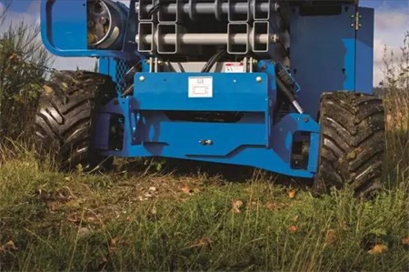 第2级:具有越障能力的Slab型——如Genie® GS™系列高空作业平台,它具有两轮驱动,左右轮之间通常有受限的液压和牵引力控制。它们能越过小型障碍物和爬坡。