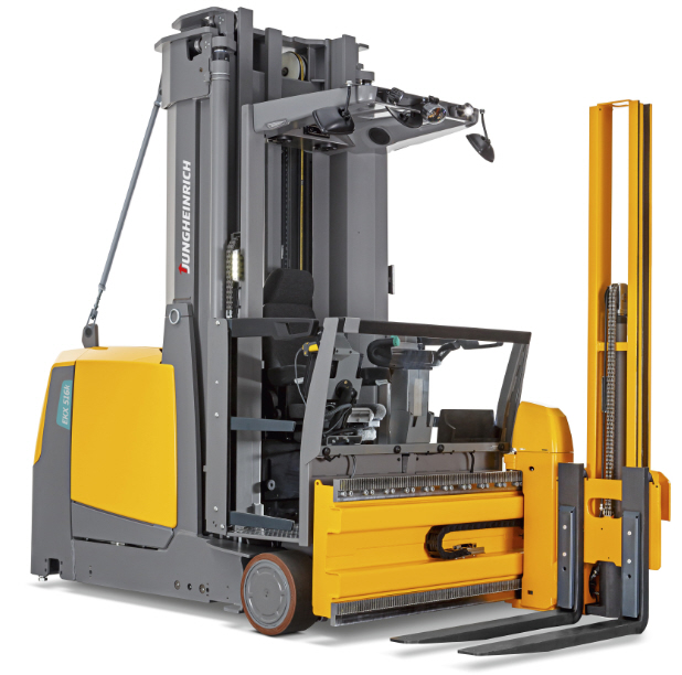 永恒力还首次为此车型系列配备了具有专利的减震系统。选配的Floor Pro模块减少了因不平整地板或非窄巷道叉车专用地板导致的门架和驾驶室的侧面振荡。“本系统为用户提供了更顺畅行驶的保证,且在不合标准的地面上最高速度可提升30%”,Rosenbach解释道。此外,Floor Pro系统易于在负载和车辆上运行并有助于减少所需的维护。目标是允许窄巷道叉车即使在最初专门设计用于前移式叉车的地板上,以及在提升高度为10米的情况下,也可以安全有效地工作。