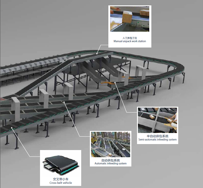 模块化设计不仅在叉车领域得到了广泛的应用,在近年来市场火爆的电商分拣设备上模块化设计也得到了充分的展示。作为德马高效智能分拣解决方案——德马交叉带式分拣机,也采用了模块化的设计。德马交叉带分拣机拥有25000件/ 小时的处理能力,是中国电商、快递、服装等行业的首选分拣设备之一。其配套的交叉带小车采用了模组化结构工业设计,引入了快速装拆技术,使得换一辆交叉带小车只需5 分钟,维护极其便利。